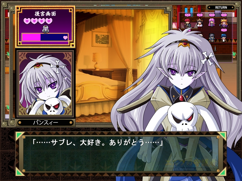 最初の帝国に攻められ敗北END、研究所までに風呂シーンや後宮シーンを埋めてトゥルーエンド見れば全回想埋まる。