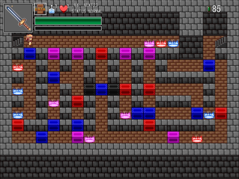魔法陣に触れると剣が強化され、敵がまとっている色に対応した魔法剣で敵と接触すると戦闘を行わず勝利判定となる。