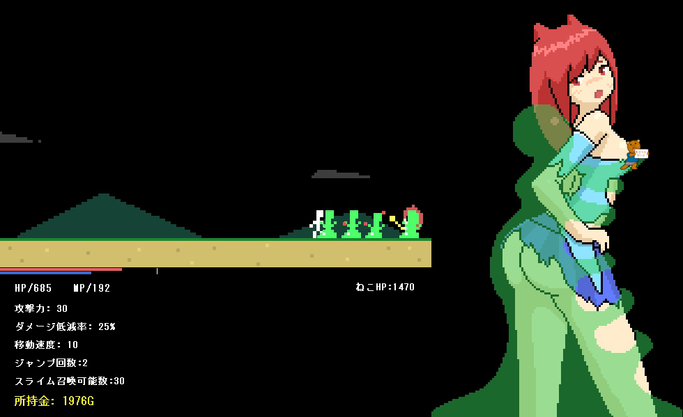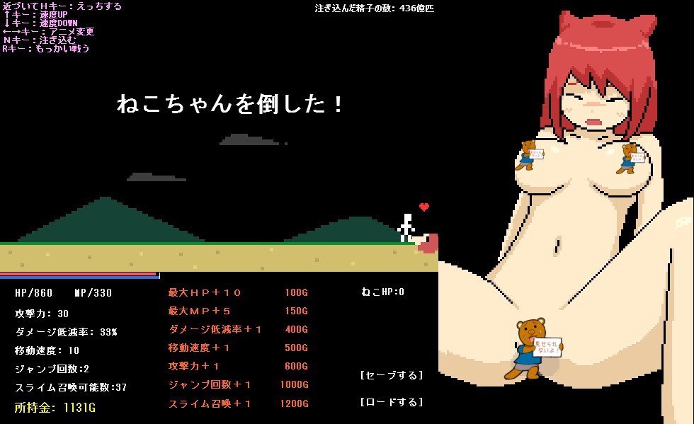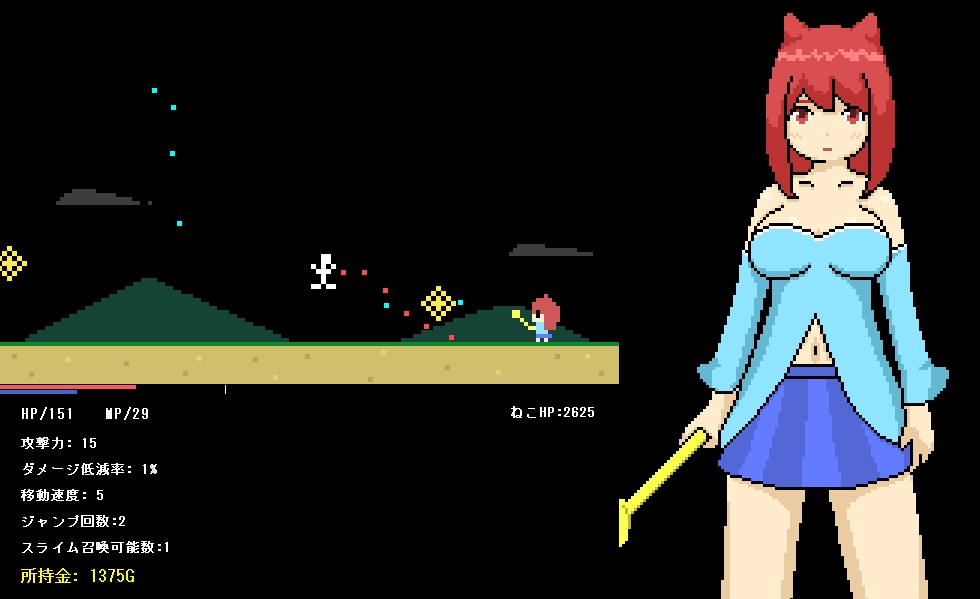 キーボードで左右やジャンプ、マウスで照準を合わせてねこちゃんに攻撃します。