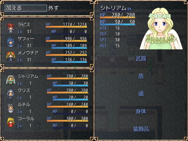 一応体装備に着せ替え要素がありますが戦闘中のエロ攻撃などはないので着せ替えは軽め。