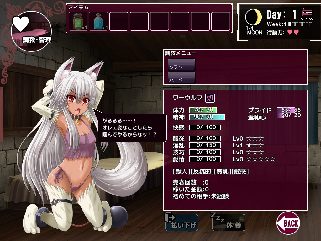 その間に娼館の基本となる魔物娘の調教などを行い、同時にヒロインとのストーリーが進行していく形ですね。