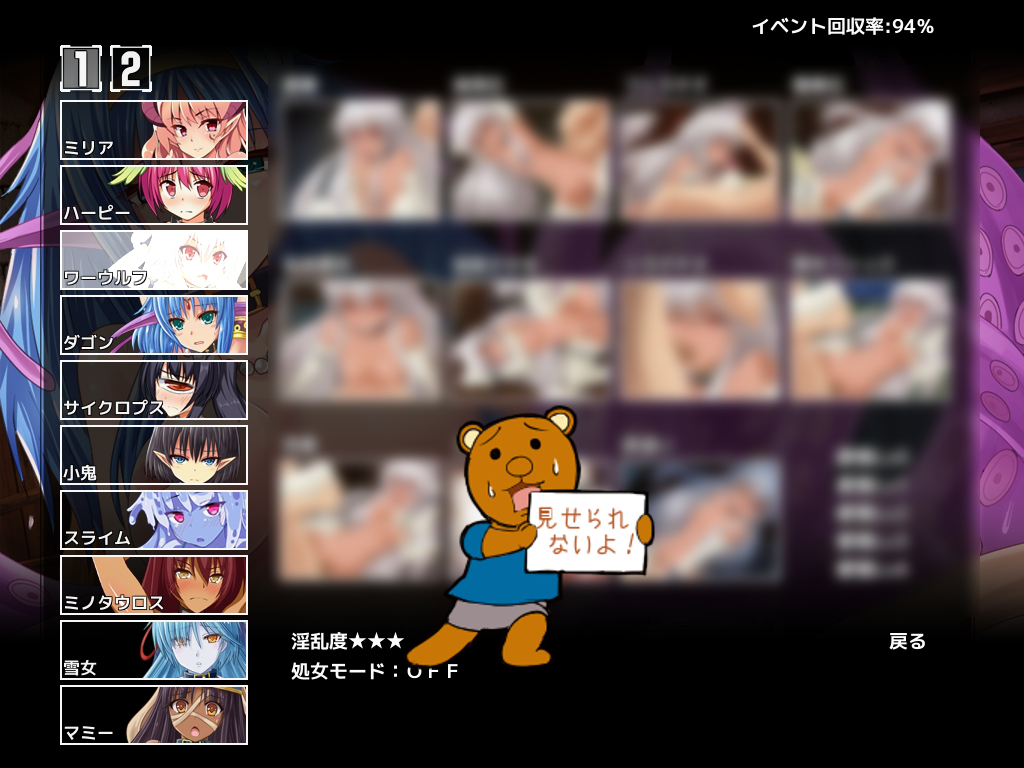 魔物娘全キャラに個別ENDとCGが用意されているので埋めれると満足度は高いですが回想埋めは少し大変でした。