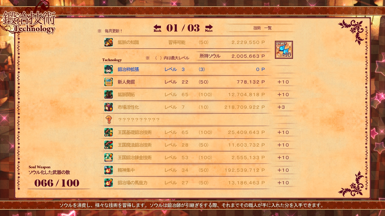 そして武器を作るとたまに「ソウルチャンス!」と呼ばれるボーナスが発生し、それを成功すると「ソウル」が得られます。