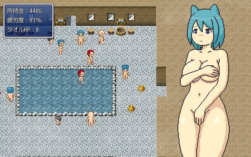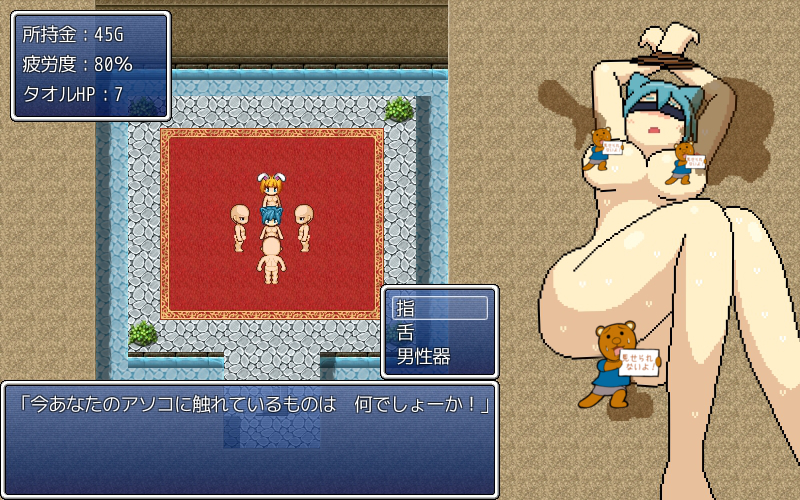 タオル状態だとある一定回数耐えられ、裸状態だとエロイベントへ。
