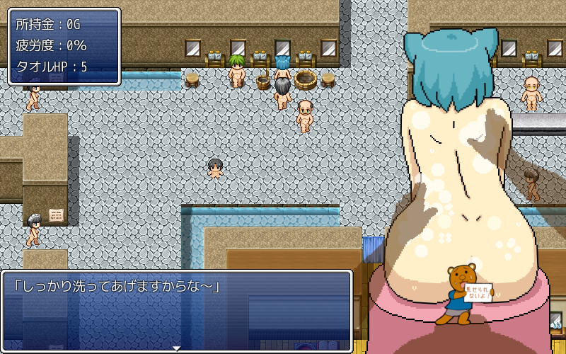 今作は男湯に飛び込みお金を回収するゲームなので、特にめったらやったらちょっかい出されまくるゲームです。