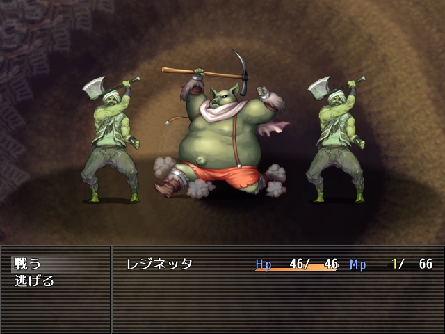 今時珍しいランダムエンカウント形式で、ヨワヨワなレジネッタに対してうじゃうじゃ敵が襲い掛かってきます。