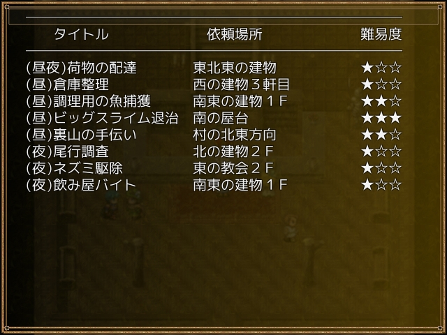 基本的なゲーム進行としては行く先々で依頼をこなしていくのがメインとなります。