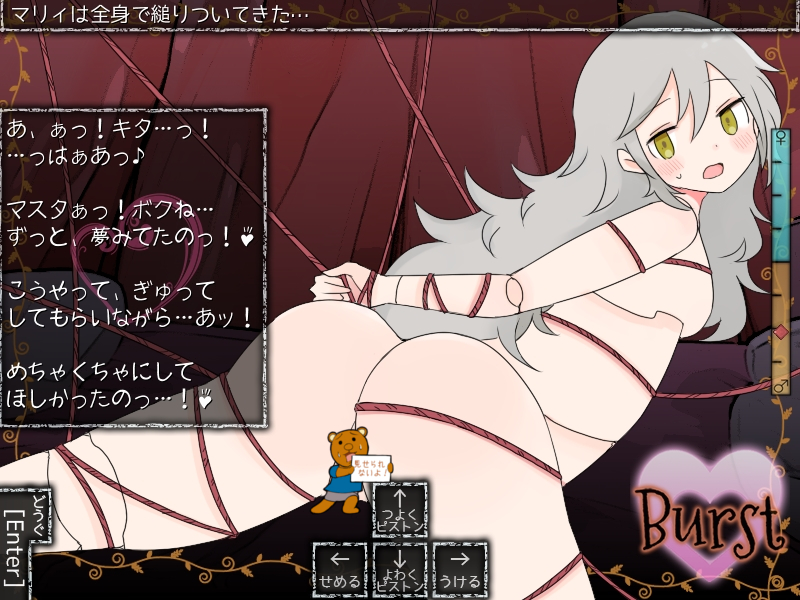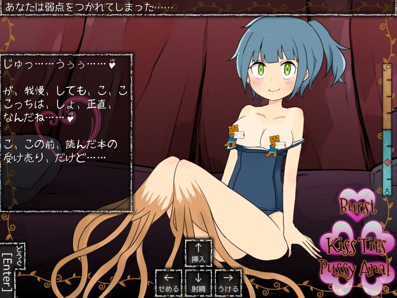 「せめる」の中にはキス、おっぱい攻め、おしり攻め、秘所攻めが用意され、攻める場所によって様々な反応を返してくれます。