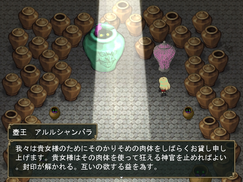 壺を欲している商人ギルドの壺王、そして肉体を取り戻したいツェヘナが共に協力しあいダンジョンを攻略していきます。