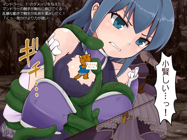エロ攻撃の比率が高く、弱い状態のアティアだと魔物に拘束されてしまい段々と穢されてしまいます。
