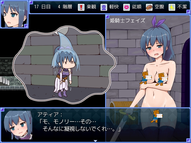 このダンジョンに引きこもっている人物がプレイヤーとなり、アティアに対してえっちな魔物をけしかけていきます。