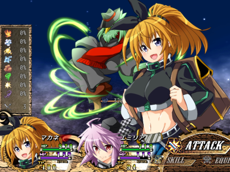 画面左側には属性が表示され、属性技を使用することでその%が上がりダメージが上昇していきます。