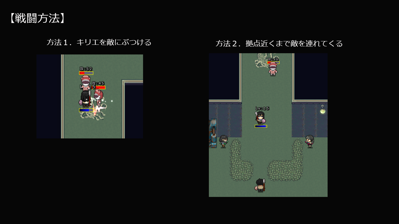 またキリエのみで戦う事も出来ますが敵の攻撃が激しい場合は本陣の所まで敵を釣るのも重要。