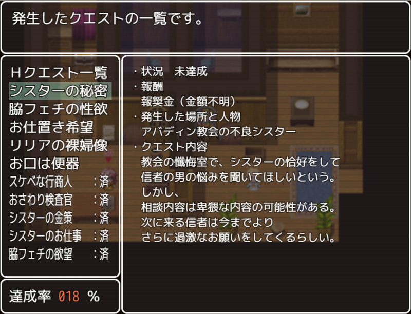 クエストは多く用意され、エロイベント系、通常イベント系と別れており様々な依頼が舞い込んでくる。