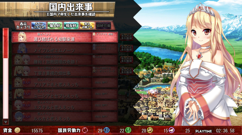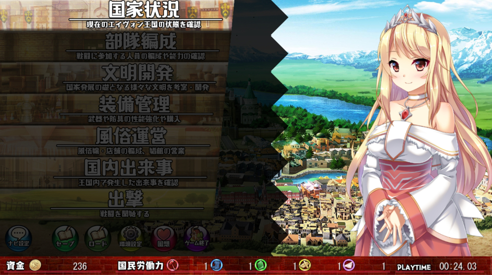 絶望な状態から国を取り戻していくというハードな展開からスタートしますが本作の見所はその圧倒的テキストボリューム。