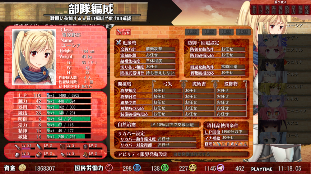 またオートに関しては行動をある程度設定も可能で、どの状況で回復アイテムを使用するか等も弄る事が可能。