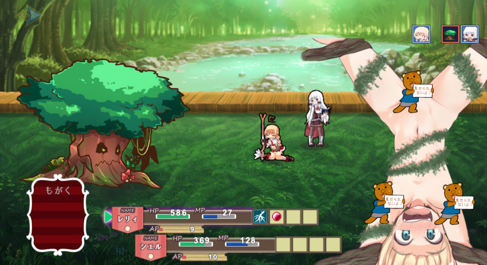 特殊攻撃を受けてしまうとそれぞれのキャラクターは少しずつ脱衣で回避し、最終的には拘束されてしまったり。