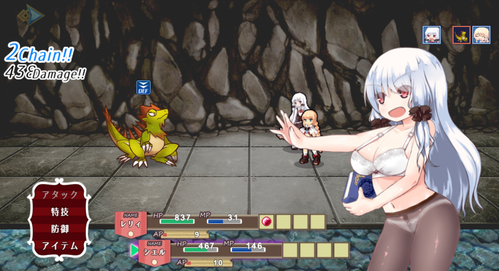 本作も非常に可愛らしい仕草が特徴的な主人公で、何かと慌ただしい元気印が光るレリィ。