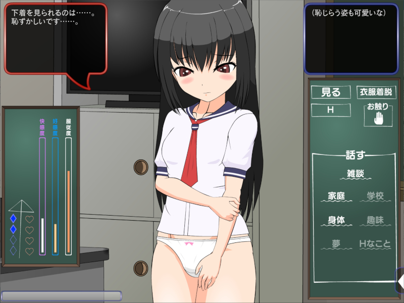 指導の中にHの項目があり一定数好感度を高めると本番えっちなどの展開へと移り変わります。