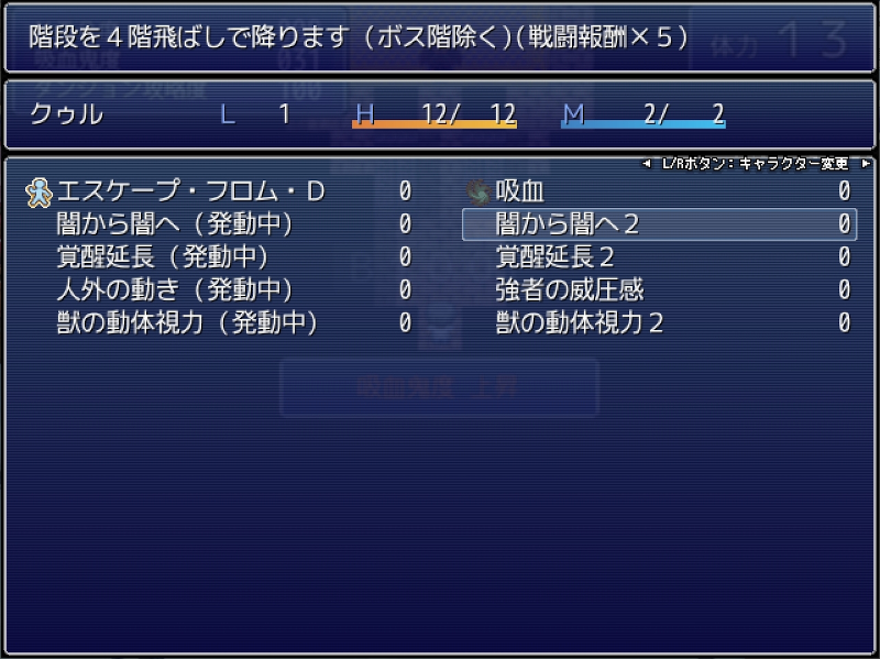 吸血鬼化を行いダンジョンを進めれば3つの進行度の維持はかなり楽になり攻略は容易。