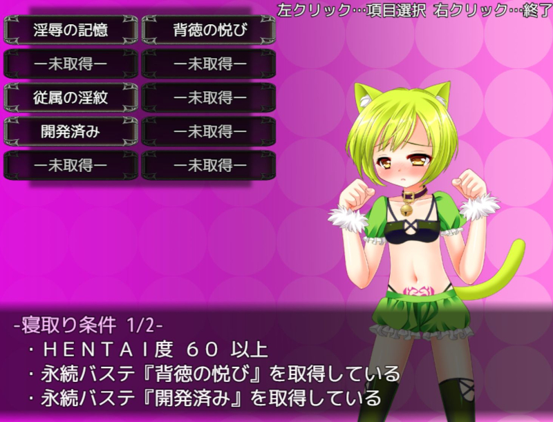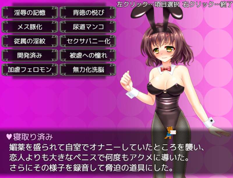 プレイヤーがブリーダーとなり、時には寝取り、時にはパートナーが寝取られるそんなシミュレーションゲーム。