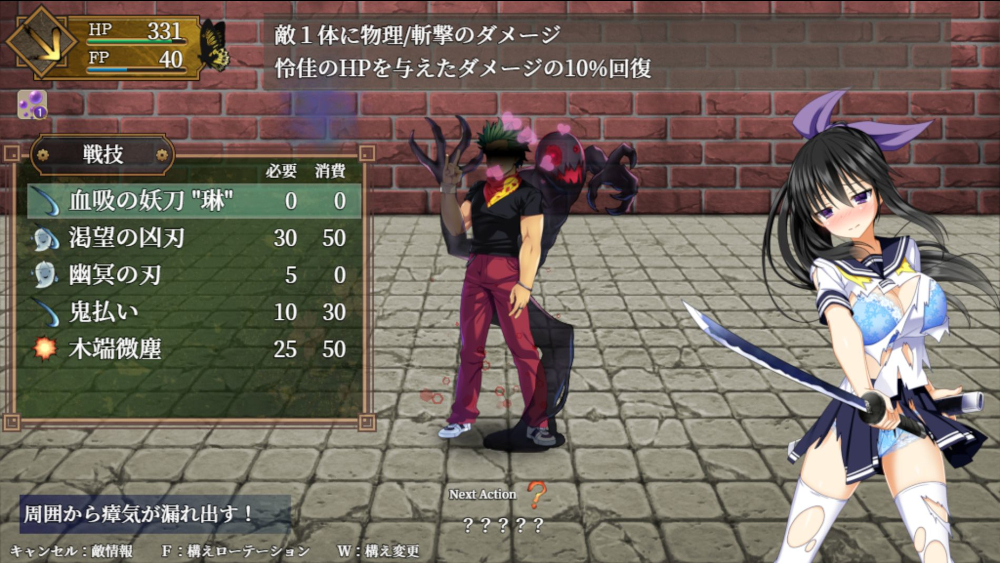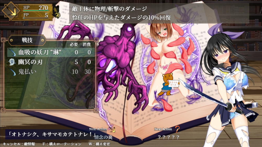 敵によってはセクハラ攻撃も頻繁に発生していくので中々危険も多い戦闘面。下着がかわいい。