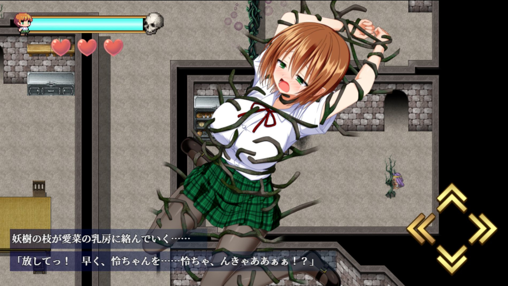 愛菜操作時では戦闘はないものの罠から逃げつつ救出の機会を探っていく。
