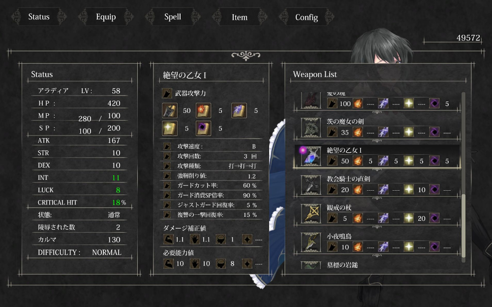 ステータスのリセットも無限に行える仕様なので新しい武器を入手した際は色々試すのも面白いかも。