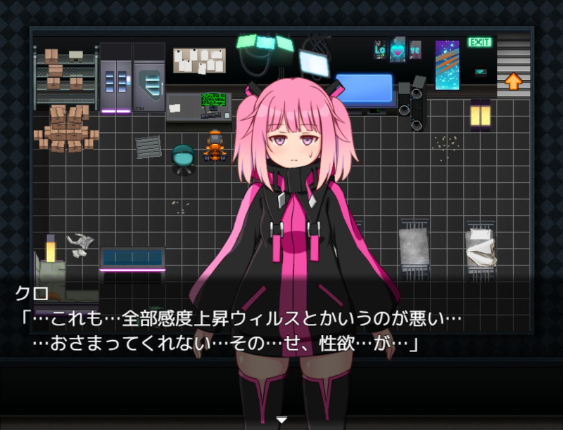ウイルスにより元の性格とは別に性欲を抑えきれなくなってしまったクロ。