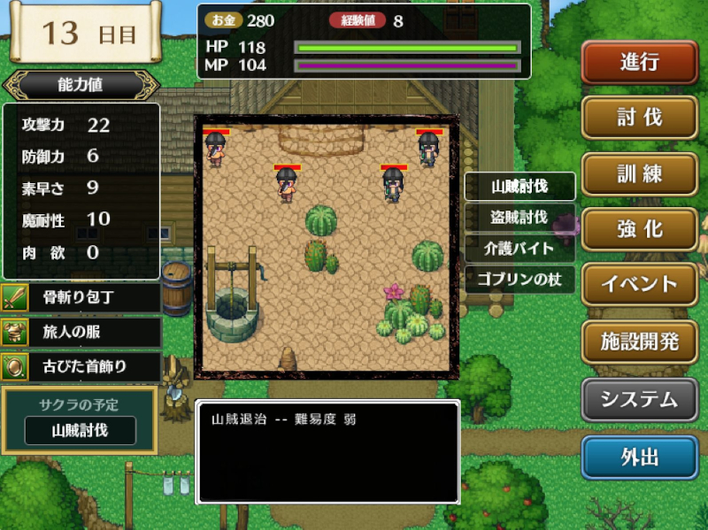 そんなサクラさんを匿いながら鍛え上げるのが目的なのでゲーム本編は育成ゲーに近い内容。