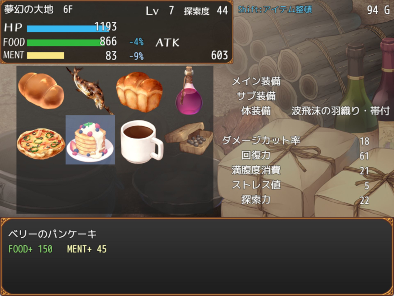 今作のダンジョンの特徴として大きいのは「食料値」「メンタル値」の存在。